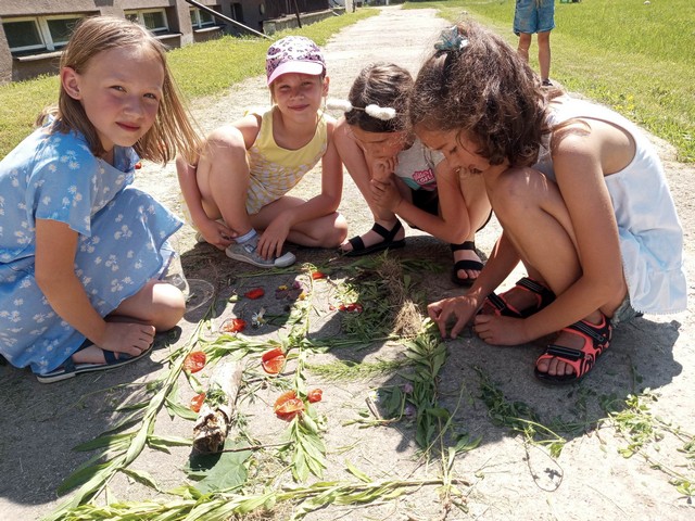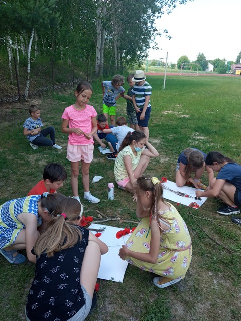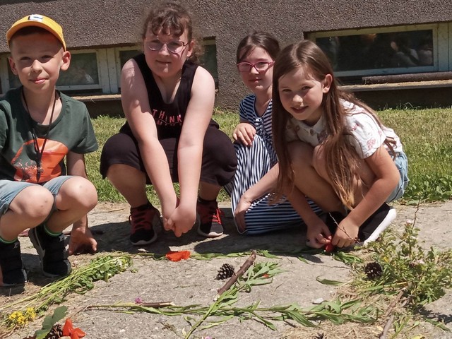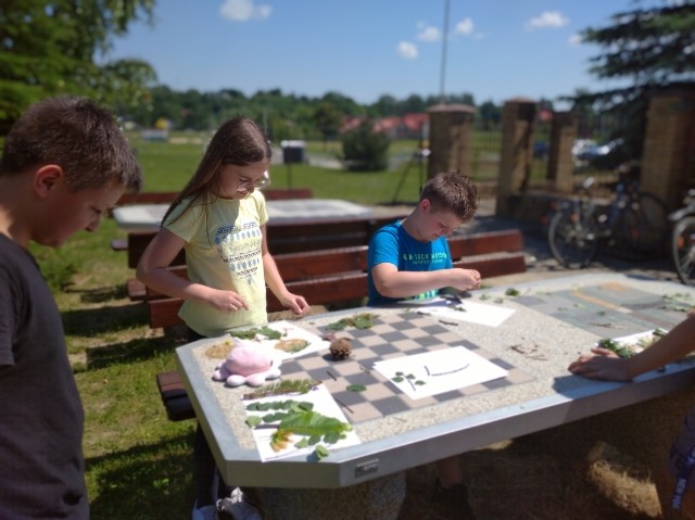 W klasie I powstały piękne odciski kory, traw, klasa IIa tworzyła komiksy z leśnych skarbów, klasa IIb piękne obrazy z użyciem kolorowego piasku, oraz odciski liści, zaś klasa III komiks nawiązujący do Asteriksa i Oberiksa. Klasa V stworzyła z tego co znalazła sceny i postacie z dotychczas omówionych lektur. Wszyscy zakończyli zajęcia z uśmiechem.