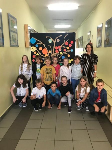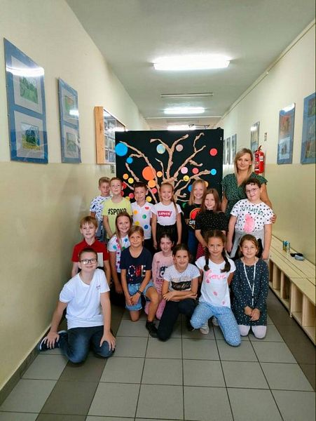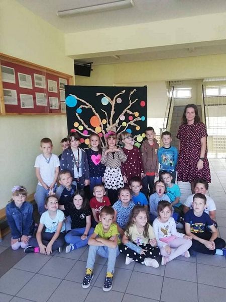 Na zakończenie świętowania klasy wspólnie wykonały kropkowe drzewo talentów.