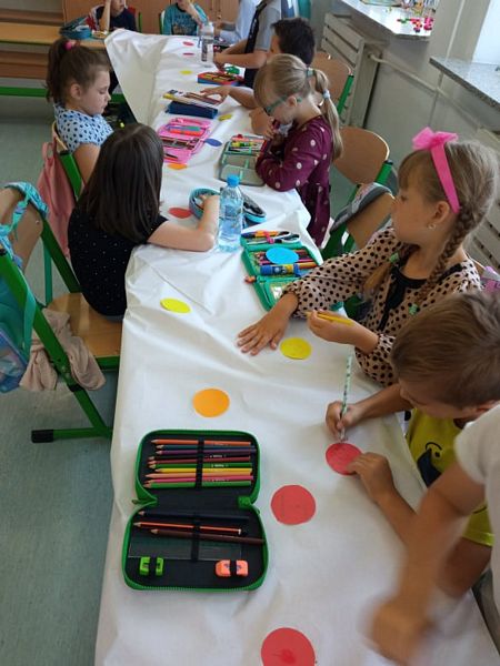 Szkolne obchody Dnia Kropki zostały zorganizowane przez klasy I-III wraz z wychowawcami i rozpoczęły się od obejrzenia filmu o małej Vashti. Uczniowie klas zaprezentowali bardzo ciekawe umiejętności i zdolności.