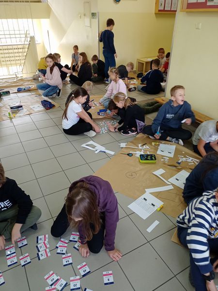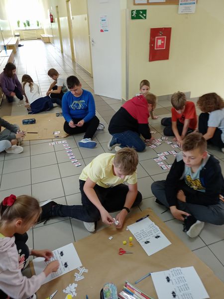 1 października ruszyły patrole egzaminacyjne, które krążyły po całej szkole sprawdzając wiedzę uczniów i nauczycieli, zaopatrzeni byli w losy, za pomocą których testowali kolegów i dorosłych. Zabawa była przednia wszyscy chcieli uzyskać certyfikat zdanego egzaminu i tytuł Eksperta Tabliczki Mnożenia. W dalszej części uczniowie klas 4 i 5 rozwiązywali w grupach różne zadania związane z tabliczką, byli bardzo zaangażowani i twórczy, chętnie współpracowali ze sobą pod okiem nauczycieli.