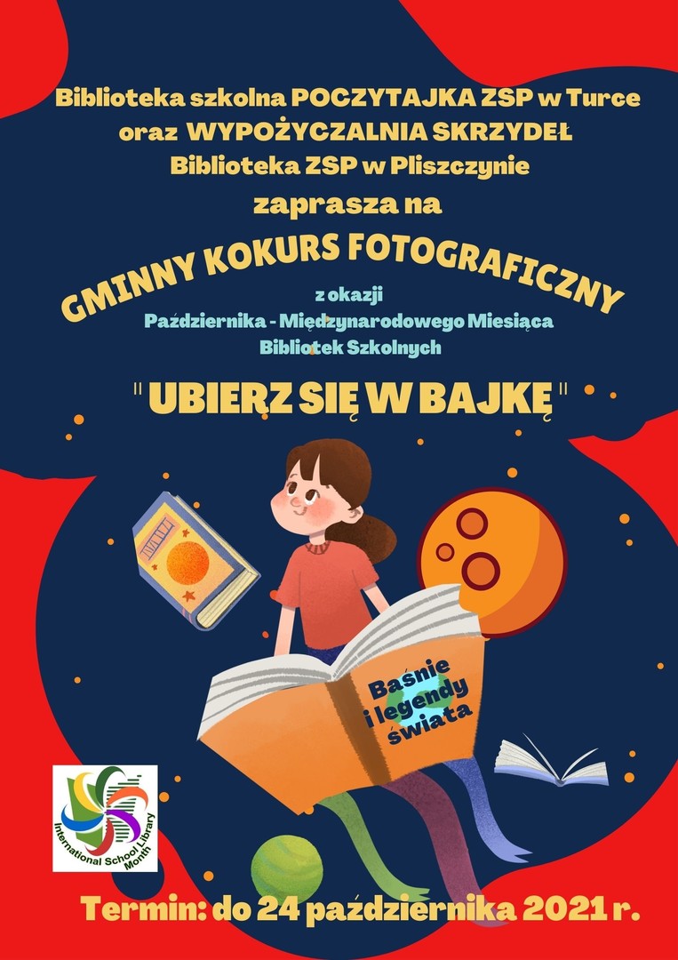 Z tej okazji zapraszamy wszystkich do udziału w gminnym konkursie organizowanym przez naszą bibliotekę „Wypożyczalnię Skrzydeł” oraz bibliotekę ZSP w Turce „ Poczytajkę”.