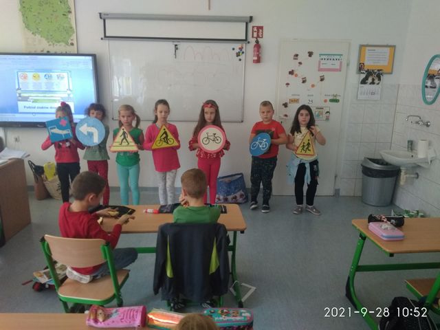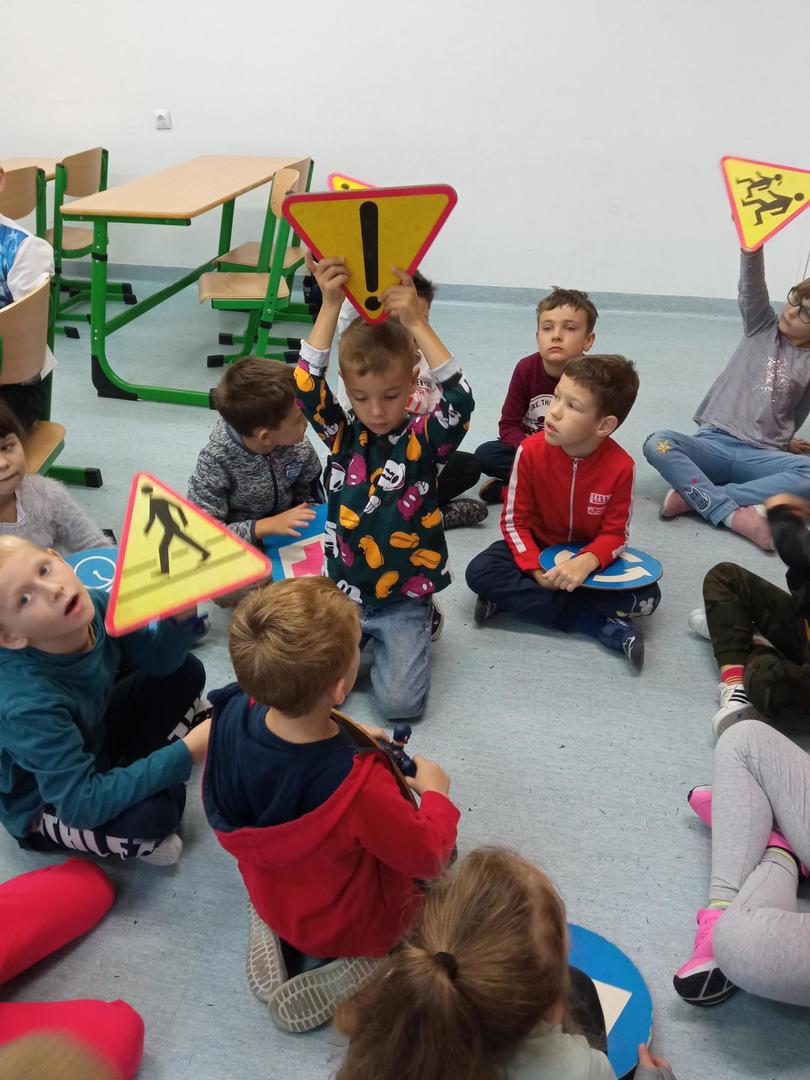 Pierwsze zajęcia dotyczyły tematyki bezpieczeństwa uczniów w drodze do szkoły, bezpieczeństwa w szkole oraz bezpieczeństwa na placu zabaw. Zostały wymienione i utrwalone wszystkie numery alarmowe. Dzieci pogłębiły swoją wiedzę na temat ruchu drogowego, zasad przechodzenia przez przejścia dla pieszych, znaków drogowych oraz właściwego korzystania z placu zabaw. Utrwaliły wiedzę jak bezpiecznie czuć się w Internecie oraz jak istotną rolę dla naszego bezpieczeństwa odgrywają odblaski, szczególnie teraz jesienią gdy dni robią się coraz krótsze i szybko zapada zmrok. Ideą tej akcji jest to, że dzieci po zdobyciu wiadomości