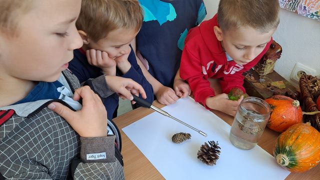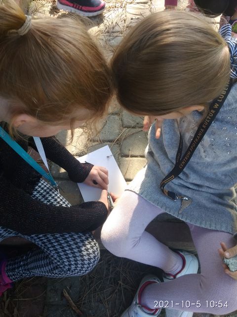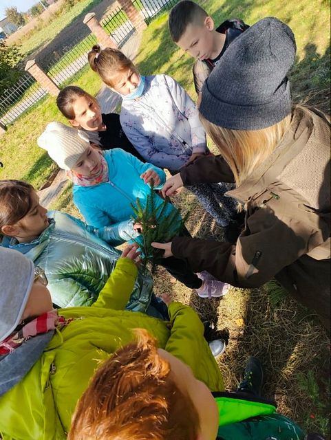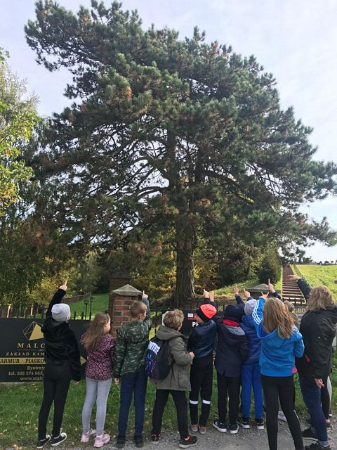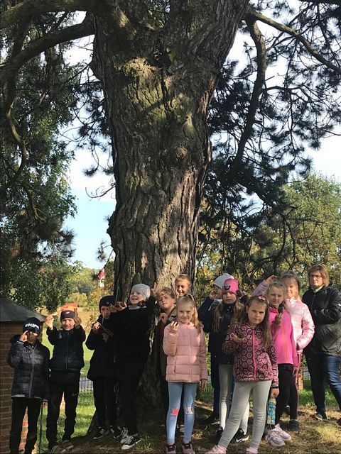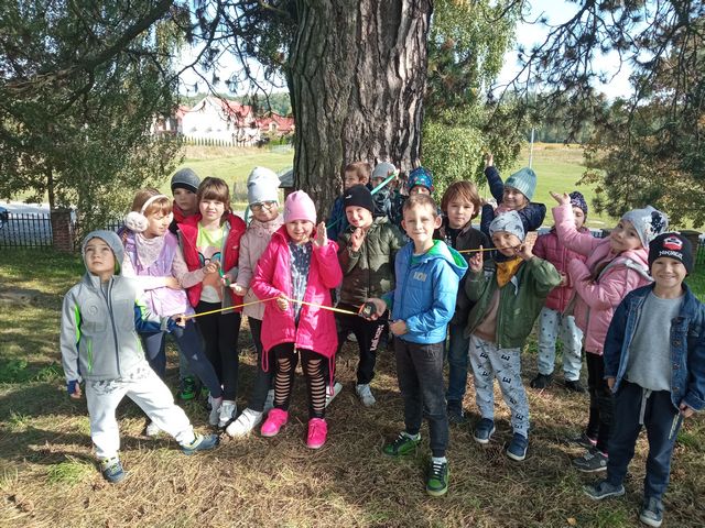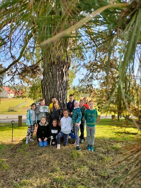 Co roku 10 października obchodzimy w Polsce Święto Drzewa, poza mierzalnymi i policzalnymi korzyściami, każde zdrowe drzewo to przede wszystkim wspólne dobro, które towarzyszy co najmniej kilku pokoleniom. Każdy z nas znajdzie w pamięci takie, na które się wspinał w dzieciństwie, oglądał przez okno, czytał w jego cieniu, zbierał kasztany, czy samodzielnie je sadził. Jest nawet sylwoterapia-przytulanie drzew, przytul się do brzozy i czerp pozytywną energię w czystej postaci...Przekonani o tym czy nie, dostajemy od drzew tyle dobrodziejstw, że Święto Drzewa możemy celebrować na różne sposoby. A naszym sposobem świętowania był wspólny projekt edukacyjny "Wspaniałe drzewo". Uczniowie klas I-III postanowili przyjrzeć się bliżej Duszce i zaczęły się wędrówki pod sosnę...I poszły w ruch miarki, sznurki, własne dłonie...I badali, i mierzyli, i sprawdzali, i dotykali, obejmowali...Duszka chyba jeszcze nigdy nie była w takim centrum zainteresowania, ale skoro pragniemy by została Drzewem Roku, to chcemy wiedzieć o niej jak najwięcej. Klasa 1a-zmierzyła się z obwodem ;), klasa 1b bratała się z igłami, klasa 2 obadała szyszki na wszelkie sposoby, natomiast 3a ustalała czego Duszka potrzebuje do życia i kto tam się zakorzenił w jej koronie,a 3b jej wysokość sosnę zmierzyć próbowała.Najfajniej zdobywać wiedzę samemu, samemu doświadczyć i poznać. Poszliśmy dalej i stworzyliśmy prace na konkurs organizowany przez Młodzieżowy Dom Kultury w Lublinie pt. Mały Format-II Lubelski Konkurs Grafiki Dzieci i Młodzieży. Przyroda w temacie i elementy przyrodnicze wykorzystane w pracach wykonanych warsztatową techniką graficzną- kolografią były dopełnieniem naszego projektu. Na sam koniec każda klasa spotkała się w plenerze pod Duszką, z panią leśnik- Weroniką Wolińską (absolwentką naszej szkoły!!!!)Pani Weronika dzieliła się z dziećmi swoją wiedzą na temat czarnej sosny, innych drzew i tego na czym polega jej praca. Projekt klas I-III "Wspaniałe Drzewo"zakończyliśmy, ale mamy nadzieję, że to dopiero początek, że o Duszcze jeszcze będzie głośno, że otrzyma tytuł Drzewa Roku, że zostanie Pomnikiem Przyrody, a to pozwoli na objęcie jej leczeniem, ponieważ jest chora, usycha i o dziwo rośnie w niej topola, która znacznie ją osłabia.