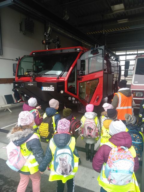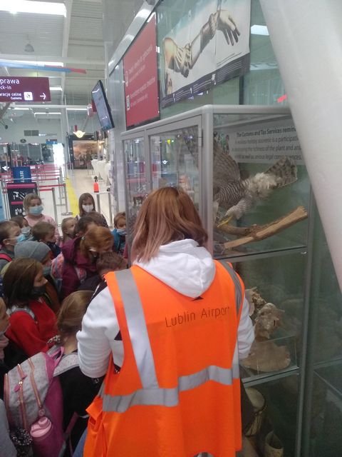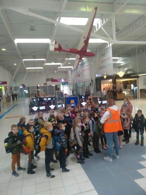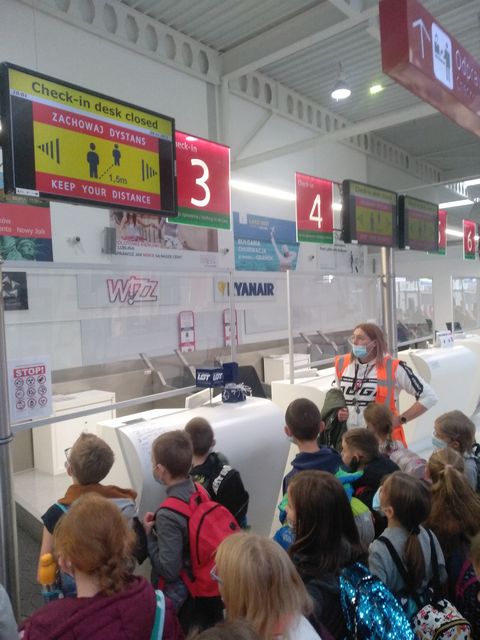 "Panie pilocie dziura w samolocie!!!..."tak wołały dziś dzieci na lotnisku Lublin Airport z klasy 1b i 2. Chodziliśmy dziś ścieżkami, niekoniecznie dostępnymi dla każdego klienta lotniska. Wizyta nasza miała związek z udziałem w projekcie "Czytamy z klasą lekturki spod chmurki", ponieważ podróżowanie to temat przewodni omawianych przez nas lektur, postanowiliśmy sprawdzić osobiście na czym to podróżowanie polega. Zobaczyliśmy miejsca gdzie wędrują bagaże, oglądaliśmy w gablocie przedmioty, jakie pasażerowie próbowali przewieźć przez granicę, a nie powinni, poznaliśmy zasady zachowania się na lotnisku, widzieliśmy i rozmawialiśmy z pracownikami lotniska-kontroler ruchu na wieży lotniczej,strażnicy odprawy celnej. Każdy z nas przeszedł kontrolę przechodząc przez bramkę, zostawiając rzeczy na taśmie pod skanerem bagażu, odwiedziliśmy lotniskowe służby ratowniczo - gaśnicze.Wielkie wrażenie zrobiły na nas wozy strażackie, były ogromne !!! Dowiedzieliśmy się, że skoszenie trawy na terenie całego lotniska trwa miesiąc! Obserwowaliśmy pana, który odstraszał ptaki i zwierzęta z okolic pasa startowego,a na koniec byliśmy świadkami przylotu i lądowania samolotu pasażerskiego.