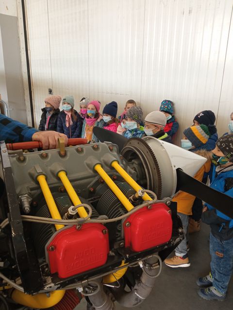 Uczniowie z bliska poznali tajniki lotek, owiewek i innych części nośnych, mogli zaobserwować zależności między sterem a ich ułożeniem. Później zwiedziliśmy hangar firmy gdzie kilka maszyn czekało już na start.