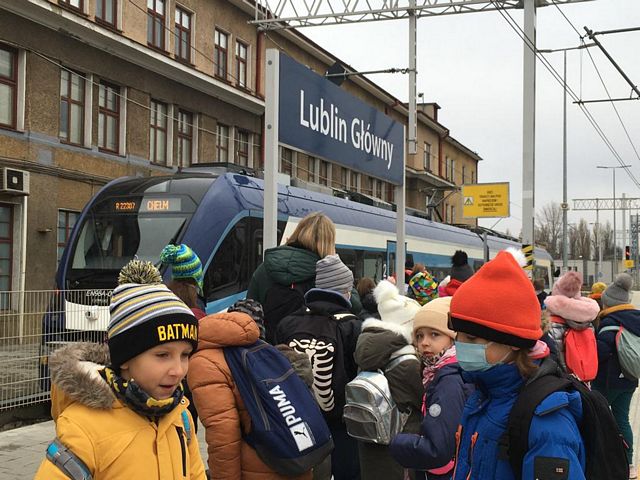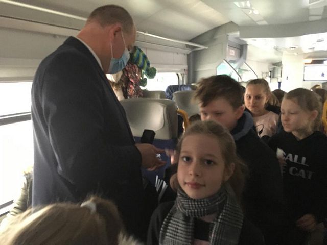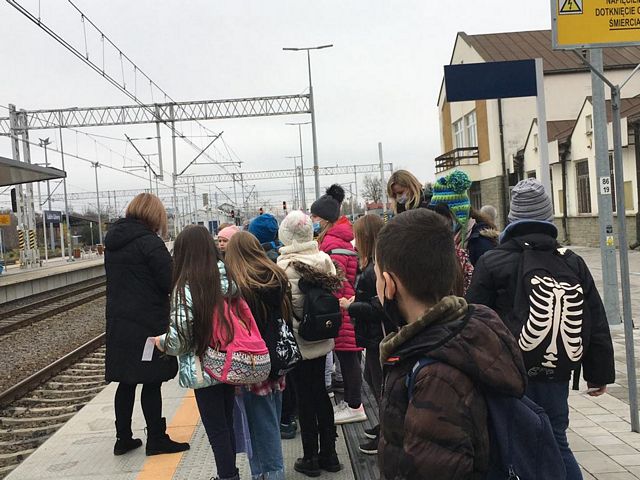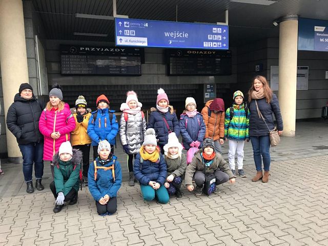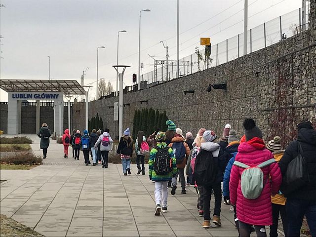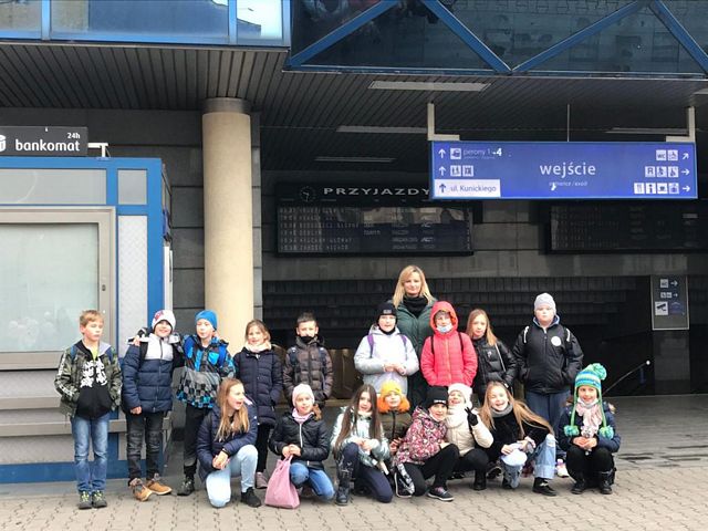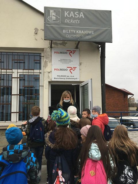 Uczniowie klasy IIIa i IIIb z naszej szkoły wybrały się na wycieczkę na Dworzec Główny PKP w Lublinie realizując projekt edukacyjny "Czytamy z klasą lekturki spod chmurki". Tematem czołowym projektu w realizowanym module jest podróżowanie i zawody z nim związane. Wyjazd pozwolił uczniom na bliższe zapoznanie się z osobami zatrudnionymi na dworcu kolejowym, jak również poznanie charakteru pracy na dworcu. Kierownik stacji przedstawił uczniom najważniejsze zasady panujące na dworcu, dzieci zwiedziły perony, dowiedziały się wielu ciekawych informacji na temat ruchu pociągów oraz zasad bezpieczeństwa, których trzeba przestrzegać na peronach, podziwiały Dworzec Główny. Ogromną atrakcją okazał się przejazd pociągiem na trasie Lublin-Świdnik - Lublin. Każde dziecko w kasie kupiło bilet a po przejściu do pociągu i zajęciu miejsc pan konduktor sprawdził podróżnym bilety. Uczniowie mieli możliwość poznania maszynisty pociągu a także usiąść na fotelu kierowcy. Na koniec każdy uczeń dostał książkę, dzięki której można sobie przypomnieć i utrwalić zasady bezpiecznego poruszania się na dworcu kolejowym. Z pewnością będzie to niezapomniana podróż!