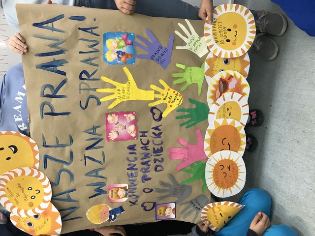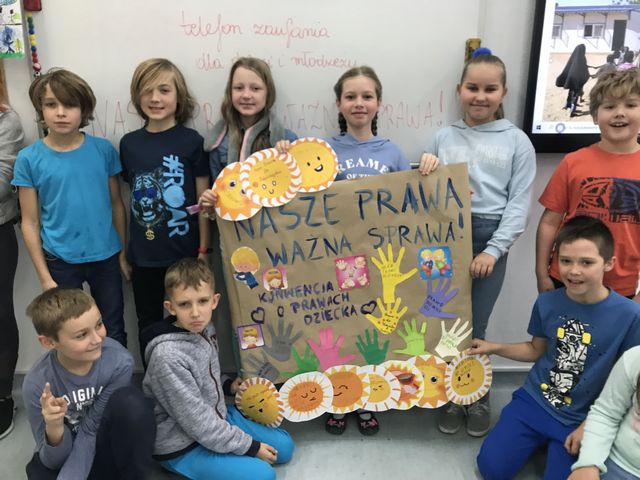 20 listopada to wyjątkowa data-rocznica uchwalenia Konwencji o prawach dziecka. To radosny dzień, ale z poważnym przesłaniem. Z inicjatywy pedagoga szkolnego,p.Katarzyny Tarłowskiej dzisiaj na lekcjach dzieci z klas 1-3 rozmawiały o swoich prawach, aktywnie uczestniczyły w dyskusjach, tworzyły plakaty dotyczące tego wydrzenia. Ubrane na niebiesko przyłączyły się do setek mieszkańców innych krajów zaangażowanych w globalne obchody Międzynarodowego Dnia Praw Dziecka z UNICEF.