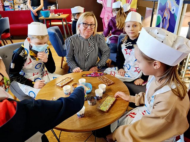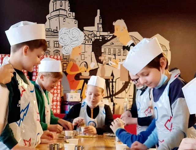 To właśnie tam czekoladowe warsztaty , w ramach prezentu mikołajkowego, odbyła 27 listopada,klasa 4.