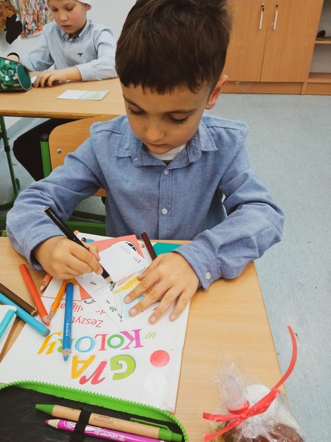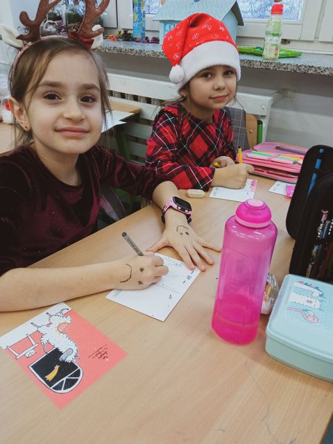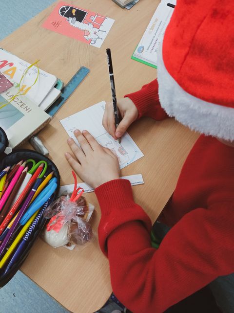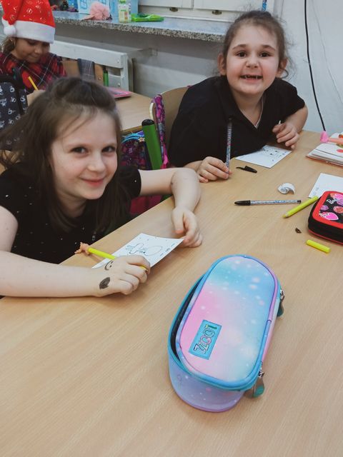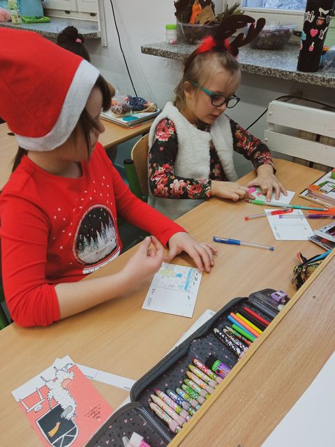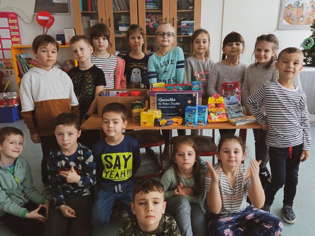 Pierwszaki przygotowały kartki dla seniorów a wraz z pozostałymi uczniami, nauczycielami udało się zebrać dary, które zostaną przekazane do Pani koordynator i trafią do potrzebujących.