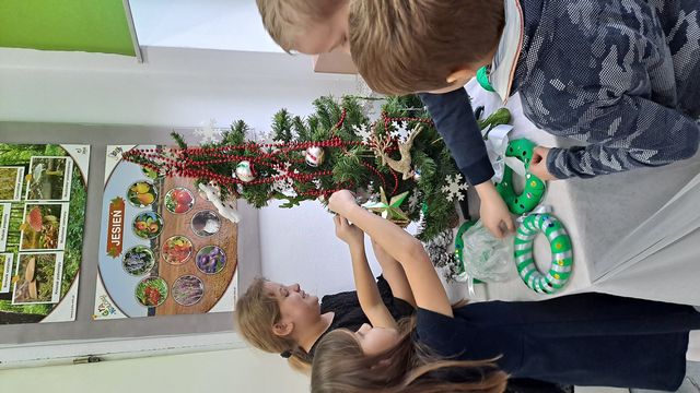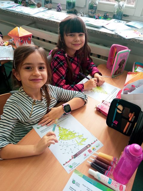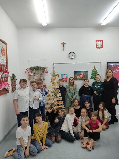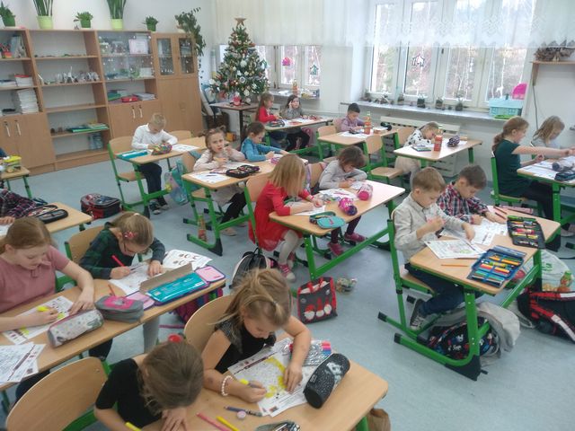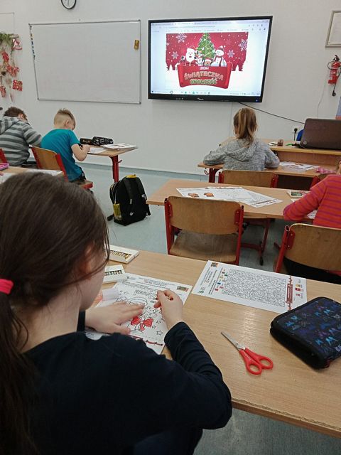 Świąteczny klimat towarzyszył naszym lekcjom, zabawom i pracy już od jakiegoś czasu. Ubieranie choinek, wykonywanie ozdób świątecznych, dekorowanie sali, tworzenie kartek bożonarodzeniowych to zdarzenia, które wprowadzały magiczną atmosferę zbliżających się świąt. Kolejna lekcja "Świąteczna opowieść" z cyklu Dzieci uczą rodziców oraz klasowe Wigilie były podsumowaniem bożonarodzeniowych działań. Poza przypomnieniem tradycji i zwyczajów, śpiewaliśmy kolędy i pastorałki i wspólnie zastanawialiśmy nad ideą pomagania. Pomaganie przez sprzątanie, pomaganie przez gotowanie, pomaganie przez przytulanie, pomaganie przez mówienie i dawanie. Pomaganie nie dla własnej korzyści, ale dla uczucia radości, spełnienia i szczęścia , które nas wypełnia gdy wywołamy uśmiech na twarzy drugiej osoby.Świat potrzebuje dobra, my potrzebujemy życzliwych ludzi wokół,bo życie samoluba może i jest wygodne,ale za to bardzo smutne i puste.Takie przemyślenia towarzyszyły naszym wigilijnym spotkaniom, które kończyliśmy degustacją własnoręcznie ozdobionych pierników oraz potraw przygotowanych przez rodziców, przy pięknie udekorowanych stołach, łamaliśmy się opłatkiem przy wtórze kolęd i światecznych życzeń. Taki nastrój, taka postawa i takie myśli powinny towarzyszyć nam cały czas, nie tylko w święta czy od święta... Dzieciaki z klas 1-3 wraz z wychowawczyniami przesyłają moc pozytywnej energii życząc wszystkim serc pełnych miłości,spokoju, życzliwości i dobra na ten świąteczny czas i na każdy dzień Nowego Roku.