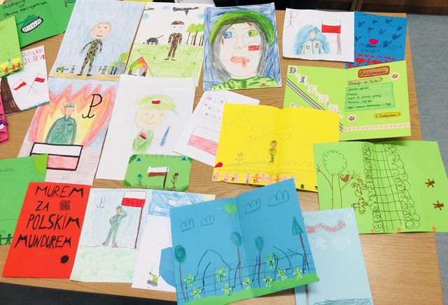 Z inicjatywy Szkolnego Klubu Wolontariusza uczniowie naszej szkoły, także przyłączyli się do akcji własnoręcznie wykonując kartki - z pozdrowieniami i wyrazami wsparcia, które trafiły do pełniących służbę na naszej wschodniej granicy.