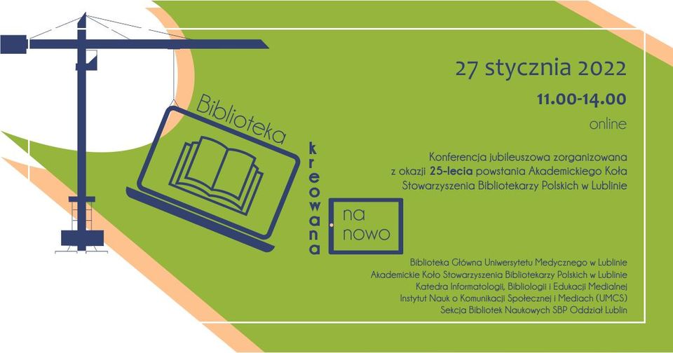 Już 27 stycznia pani Iwona Pietrzak –Płachta będzie gościć z prelekcją : „W sieci szans. Jasna strona pandemii w bibliotece”, podczas konferencji „Biblioteka kreowana na nowo" organizowanej przez Akademickie Koła Stowarzyszenia Bibliotekarzy Polskich w Lublinie z okazji 25-lecia powstania.