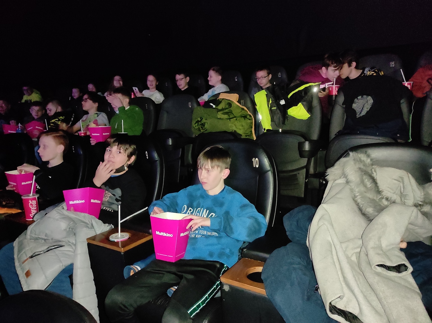 W piątek 11 marca 2022 r. klasy: piąta i szósta wraz z opiekunami udały się na seans filmowy do kina, by obejrzeć najnowszą produkcję, opowiadającą o niezwykłych przygodach tytułowego bohatera książki Goscinnego- Mikołajka.