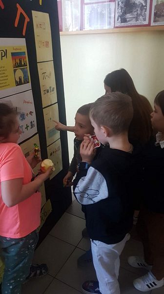 Nasza szkoła także świętowała w tym dniu, uczniowie wzięli udział w akcji „Cukierek za rebus”. Rozwiązywali rebusy z liczbą Pi przygotowane przez p.M.Mergo, nagrodą były cukierki.
