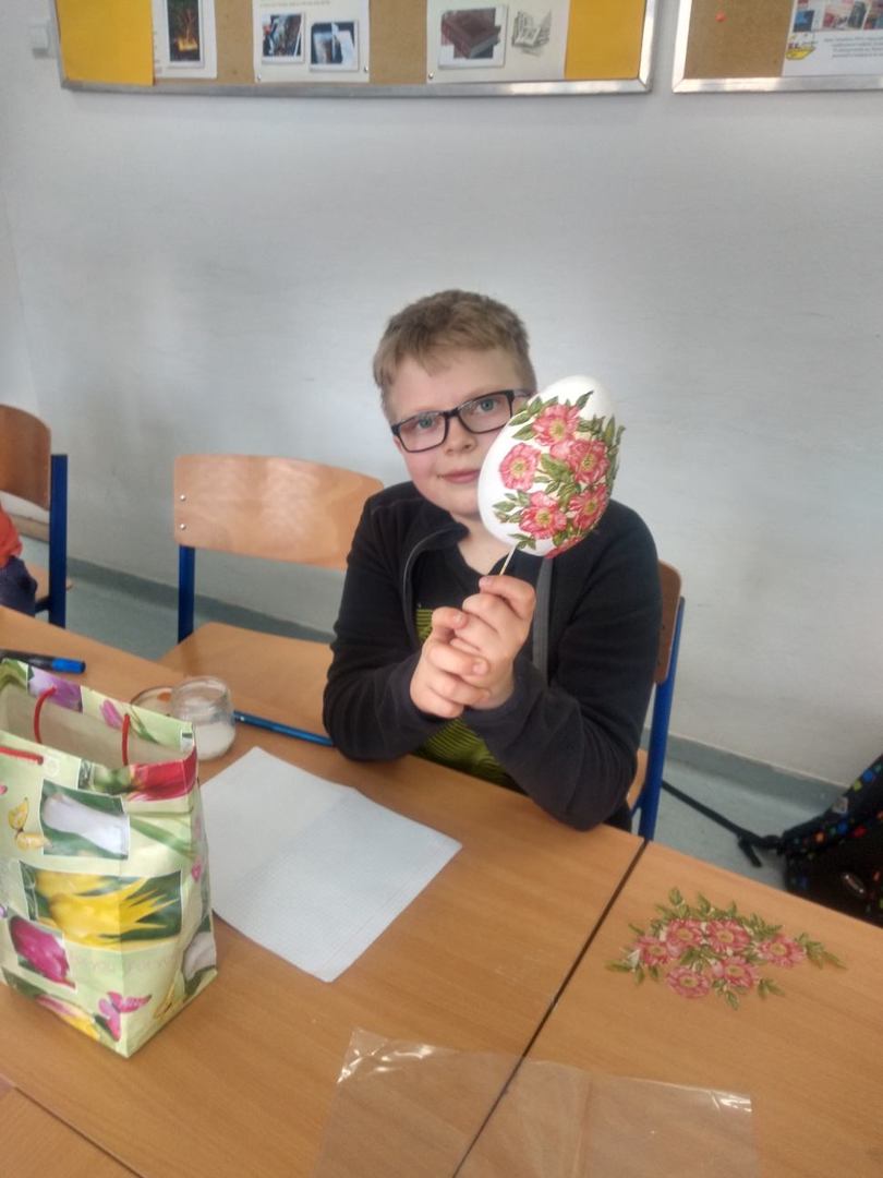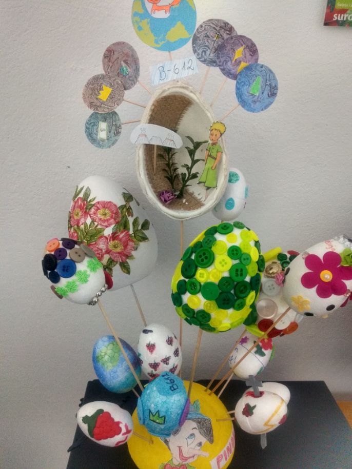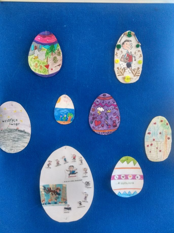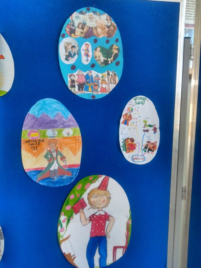 Uczniowie klas 4-8 wykonali literackie pisanki, które ozdabiali motywami z książek. Wszyscy wykazali się wielką kreatywnością i znajomością lektur. Powstały bardzo oryginalne dzieła łączące tradycję z nowoczesnością.