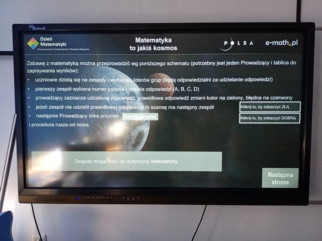 W czwartek uczniowie z klas 7 i 8 wzięli udział w konkursie „Matematyka to jakiś kosmos”. Uczniowie rywalizowali ze sobą, rozwiązując ciekawe zadania związane tematycznie z kosmosem. Była to wspaniała okazja do zaakcentowania ogromnej roli tej dziedziny nauki w życiu człowieka.