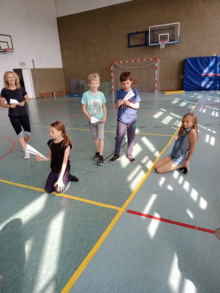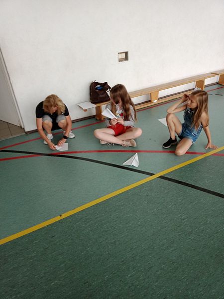 W środę uczniowie klasy 4 wzięli udział w zabawie rzucania papierowymi samolotami. Zawody odbyły się na sali gimnastycznej w kategorii najdłuższy dystans lotu.