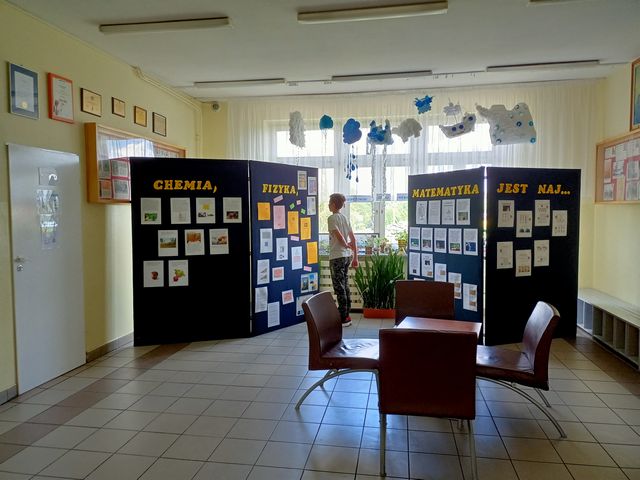 Na korytarzu pojawiły się gazetki z zagadkami i ciekawostkami z chemii, fizyki i matematyki.