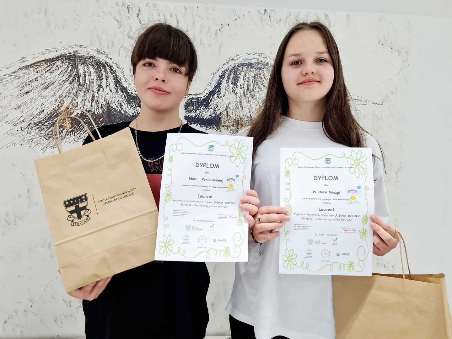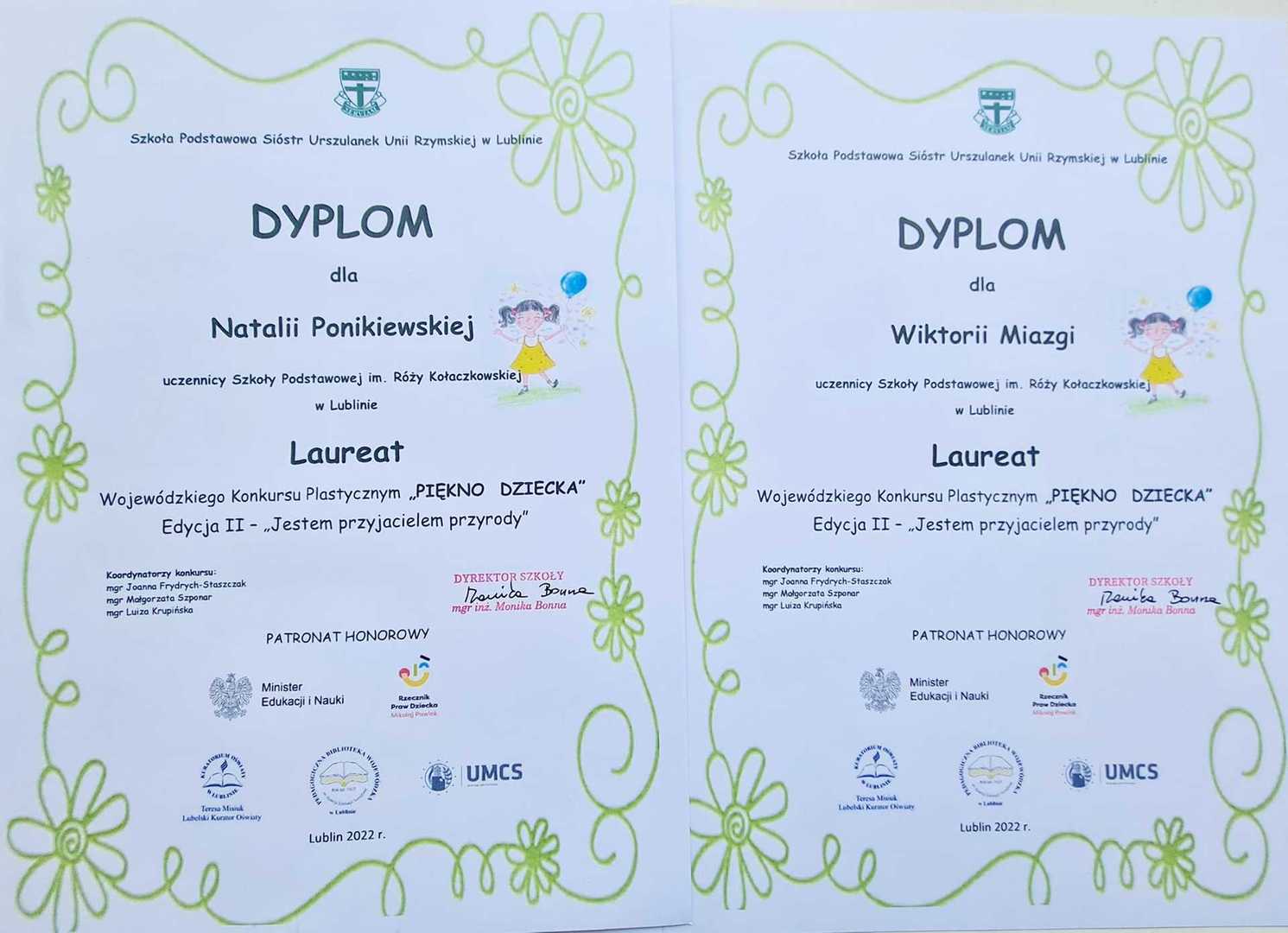 Nasze uczennice: Natalia Ponikiewska oraz Wiktoria Miazga wśród laureatów II edycji Wojewódzkiego Konkursu Plastycznego „Piękno Dziecka”.