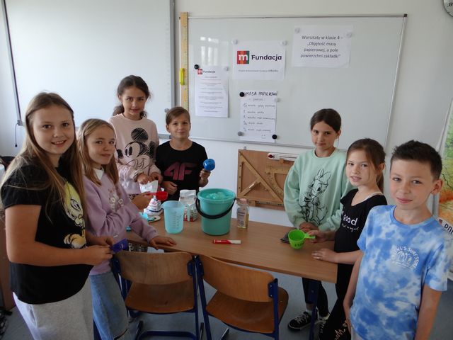 Aby stworzyć masę papierową należy posłużyć się właściwym przepisem, zachować odpowiednie proporcje składników. Przy pomocy miarek z opisaną pojemnością, udało nam się wyznaczyć właściwą objętość mąki, dołożyliśmy klej oraz oliwkę i otrzymaliśmy super, extra masę. Świetna zabawa!
