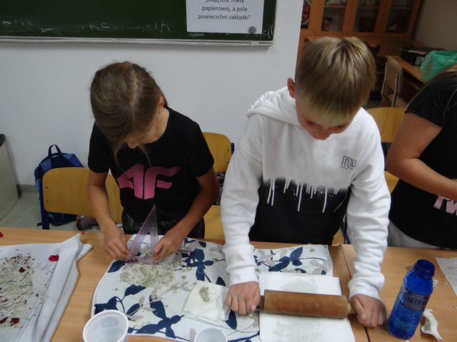To był początek, później w ruch poszły wałki i ciężka praca przy formowaniu, ozdabianiu i wyciskaniu zakładek. Pracy było mnóstwo. Teraz czas na suszenie, następnie przycinanie i wyznaczanie pola powierzchni. Obiecujemy pokazać efekt końcowy.
