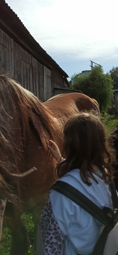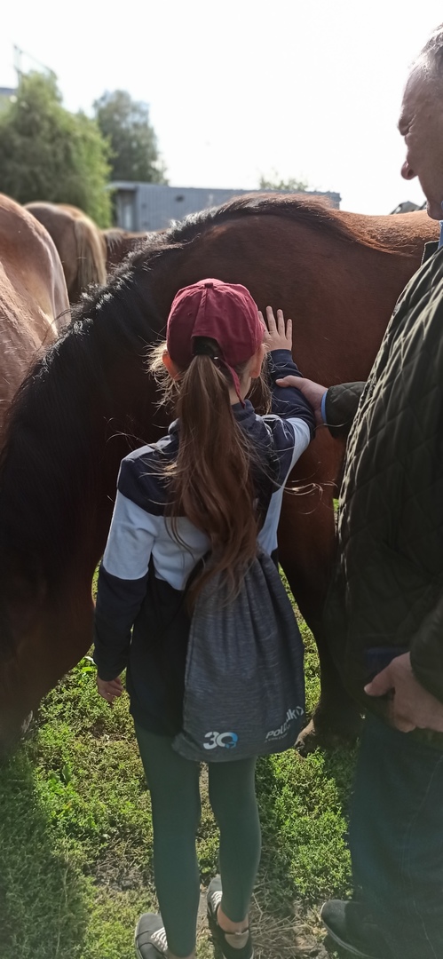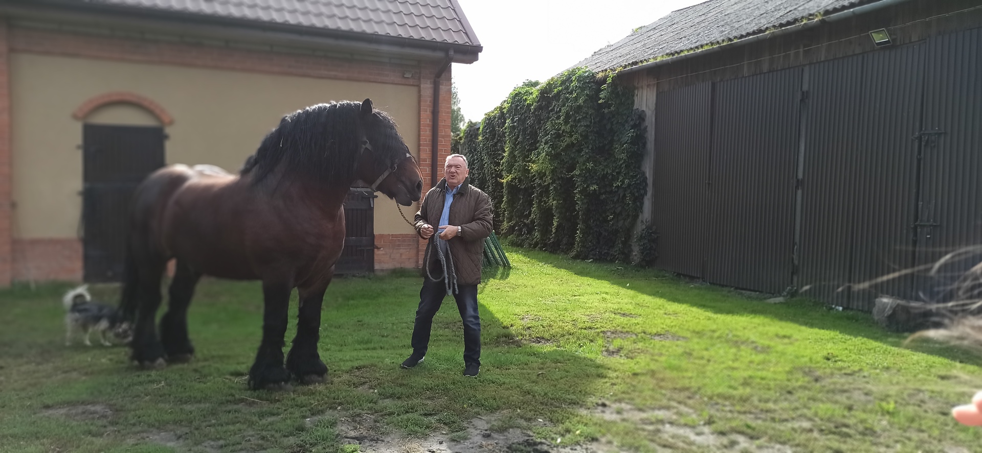 W Łuszczowie oglądaliśmy stadninę koni zimnokrwistych, dzięki życzliwości właściciela p. Ryszarda Pietrzaka. Konie, gdy tylko nas zobaczyły od razu podeszły do bramy i niektórzy „odważni” mogli je pogłaskać i przytulić się do wyjątkowo spokojnych i łagodnych koni.