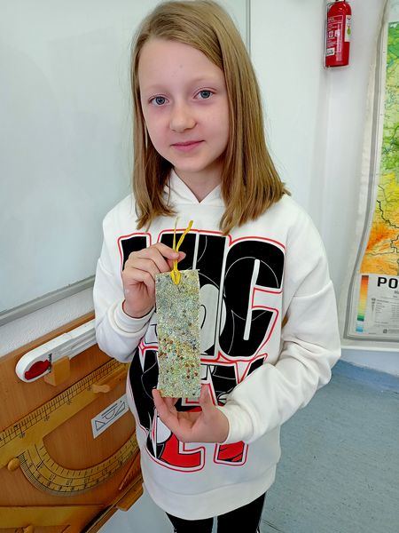 Zakończyliśmy pracę nad naszymi zakładkami, każdy mógł zmierzyć boki swojej zakładki i obliczyć jej pole. Przy okazji utrwalaliśmy mnożenie pamięciowe liczb i tabliczkę mnożenia. Oprócz zabawy była solidna nauka, zapraszamy do fotorelacji. Niektóre z zakładek trafiły do wyjątkowych osób, sami sprawdźcie do kogo.