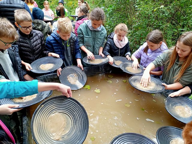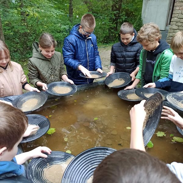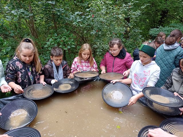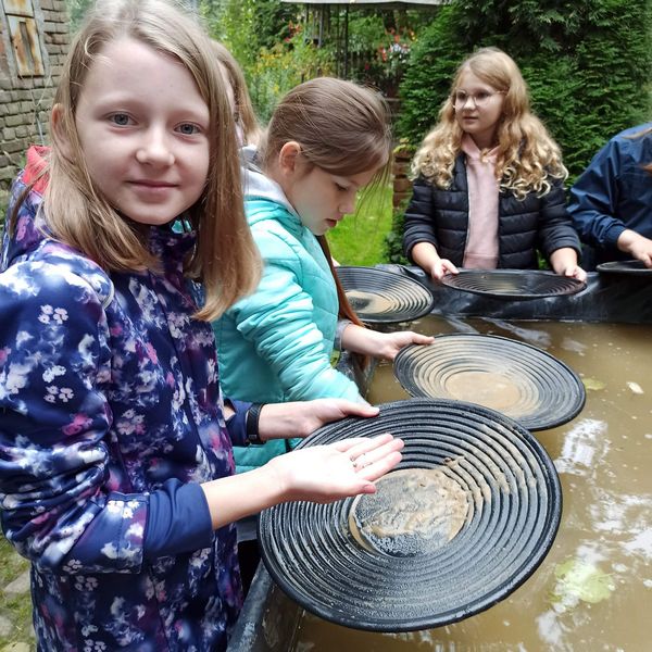 Uczniowie nie tylko zapoznali się z podstawowymi pojęciami z dziedziny przyrody, chemii, geografii czy biologii, ale też rozwijali myślenie analityczne. Zapoznali się z ogromną kolekcją eksponatów, a były to meteoryty, piękne okazy skamieniałej flory i fauny, a także kolekcja gipsów z całego świata i bursztynu. Gra terenowa okazała się pełną skarbów i tajemnic, odwiedziliśmy historyczne wyrobiska wapienne, gdzie czekała na nas skrzynia skarbów. Z jej otworzeniem nie mieliśmy żadnego problemu, gdyż uczniowie z uwagą słuchali i obserwowali to co się działo wokół. Każdy z uczestników znalazł też własny skarb. Jedną z atrakcji z jaką zmierzyliśmy się było „płukanie złota”. To była ciekawa zabawa. Niezwykle wyczerpujące i niezapomniane zajęcia, zarówno warsztaty jak i gra terenowa, z dużą dozą ruchu na świeżym powietrzu spowodowały, że szybko minął nam dzień. Tego nam było trzeba.