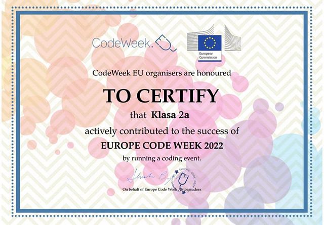 Klasa 2a otrzymała specjalny europejski certyfikat za swoje zmagania.