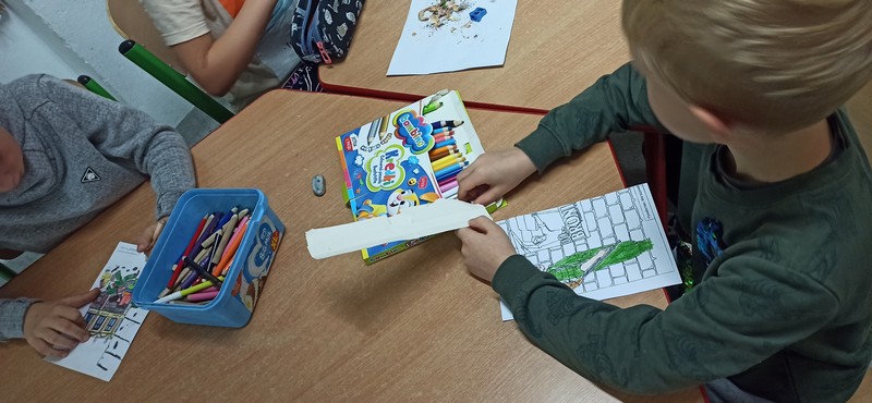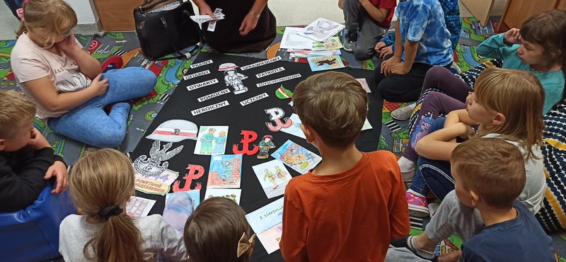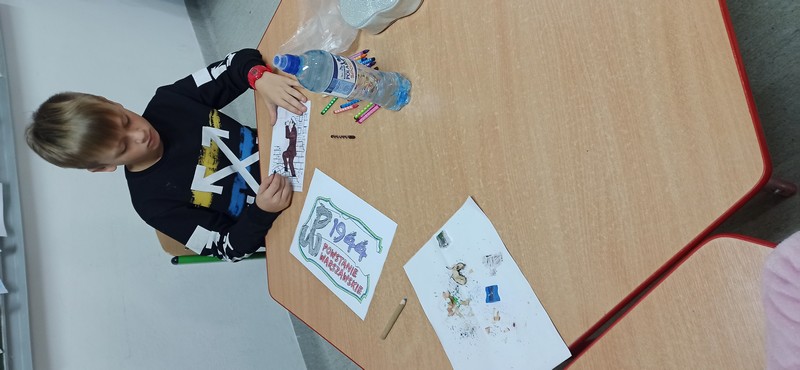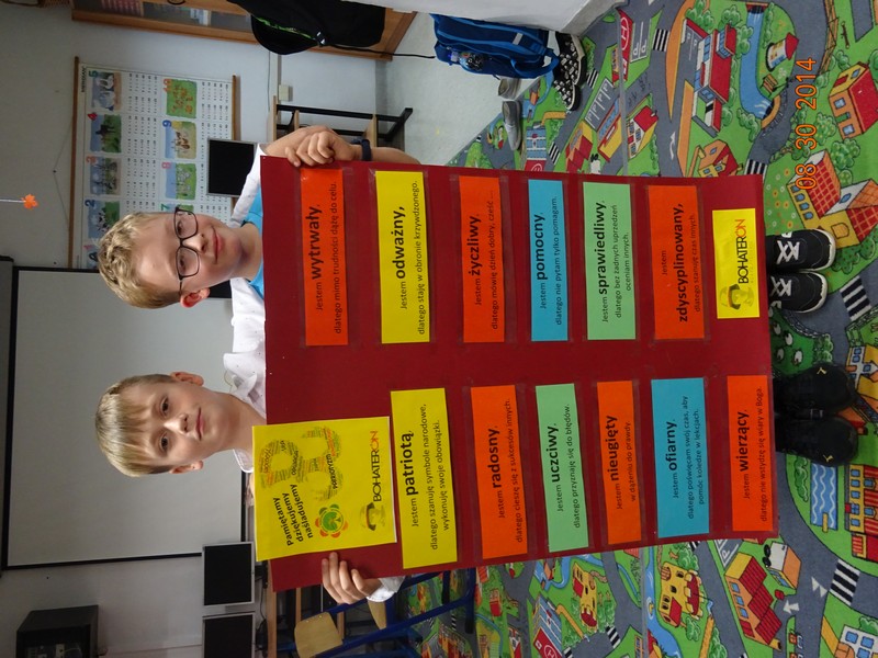 „BohaterON włącz historię” ogólnopolski projekt realizowaliśmy na zajęciach świetlicowych. Poznaliśmy historię Powstania Warszawskiego i losy powstańców, oglądając filmy dokumentalne i teatrzyk „Niebajka o Powstaniu Warszawskim”. Zamiast zdjęć z powstania, przedstawiających akcje i przedsięwzięcia powstańców wykorzystaliśmy kolorowanki, z których przygotowaliśmy wystawę. Do wystawy dołączyliśmy apel do całej społeczności szkolnej, aby każdy kto chce, zastanowił się, czy wartości, którymi kierowali się Powstańcy są nadal aktualne.
