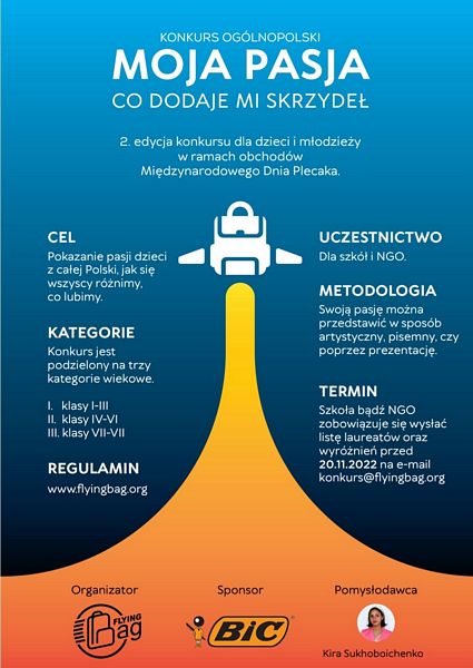 „Co dodaje mi skrzydeł - Moja Pasja” - 2 edycja organizowana w ramach obchodów Międzynarodowego Dnia Plecaka.