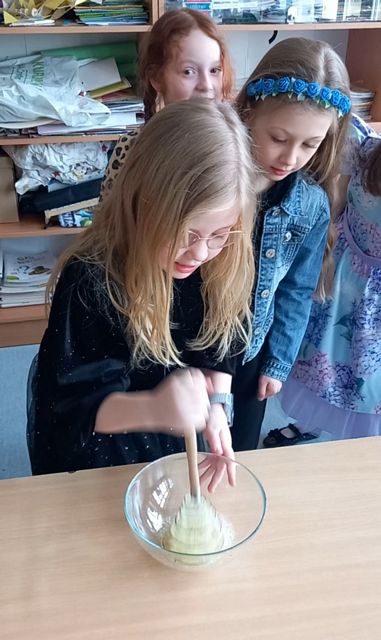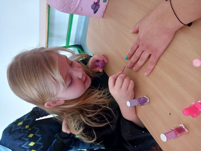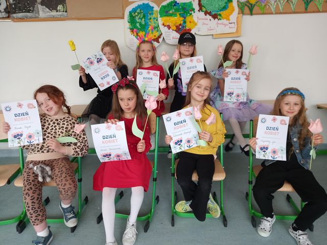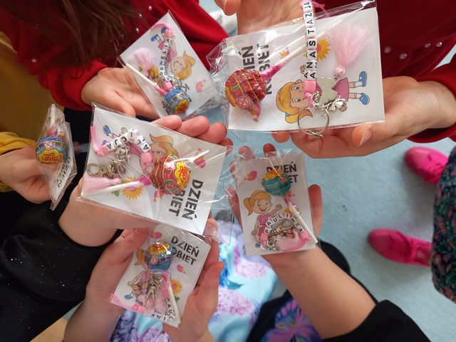 W wigilię Dnia Kobiet bawiliśmy się, wręczali prezenty i częstowali babeczkami. Dziewczyny chodziły po czerwonym dywanie na pokazie mody, nosiły jajka, ubijały jajka, stroiły mężczyzn w krawaty i muszki, malowały paznokcie i układały włosy. Były też prezenty, dyplomy i słodkie, małe co nieco.Było wesoło, głośno i miło.