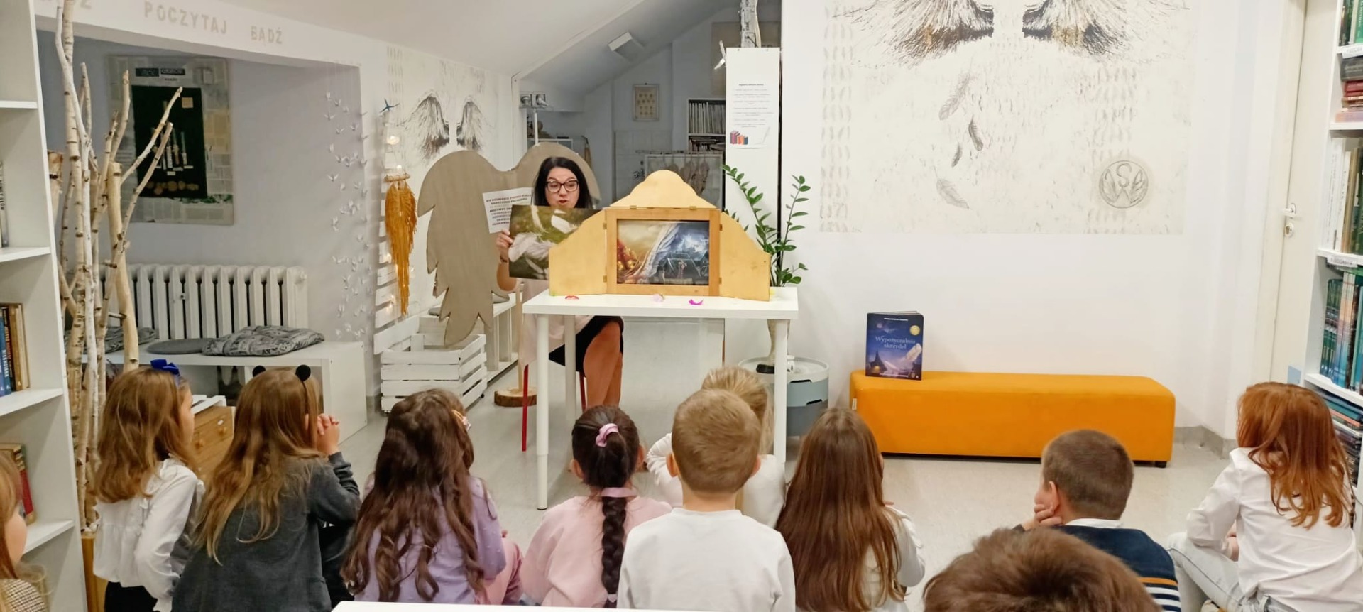 W powietrzu unoszą się piórka i magia, co otwiera strony książek! Bohaterowie bajek przysiadają na ramionach dzieci i razem z nimi wsłuchują się w opowieść! Mali czytelnicy ze swoją wyobraźnią ruszają w krainy pełne nieoczekiwanych wydarzeń! Cisza zasłuchania i szeroko otwarte oczy wpatrzone w bajkowe ilustracje.