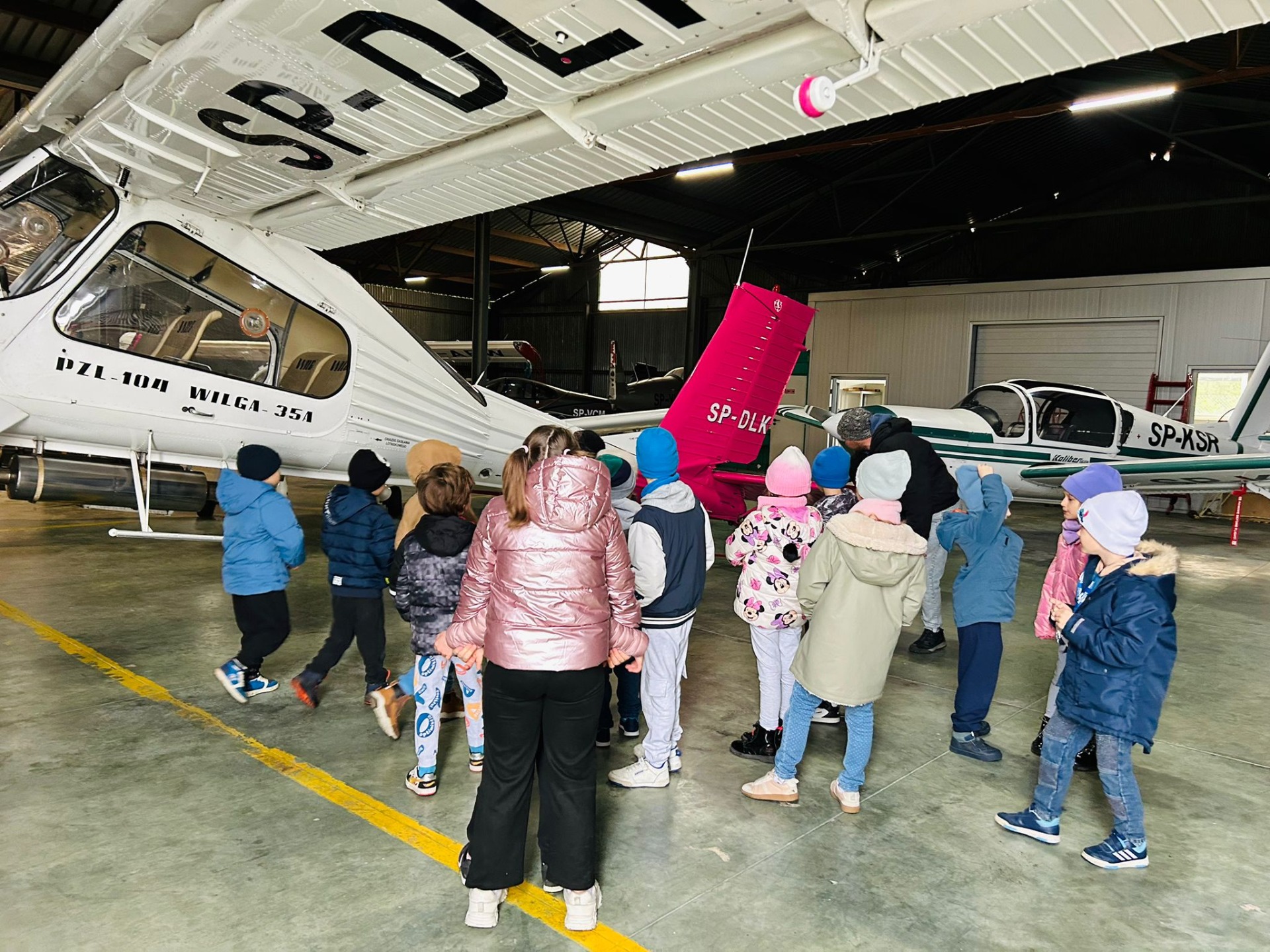 Podczas wycieczki mogliśmy zobaczyć z bliska samoloty, hangary i pas startowy, a także dowiedzieliśmy się, jak wygląda praca pilota i obsługi lotniska. W Aeroklubie mieliśmy okazję zobaczyć prawdziwe szybowce oraz posłuchać niezwykłych opowieści o lotniczych przygodach.