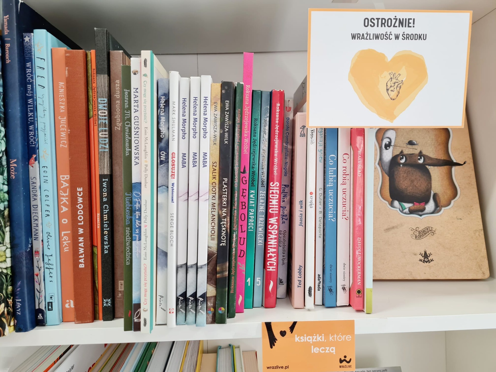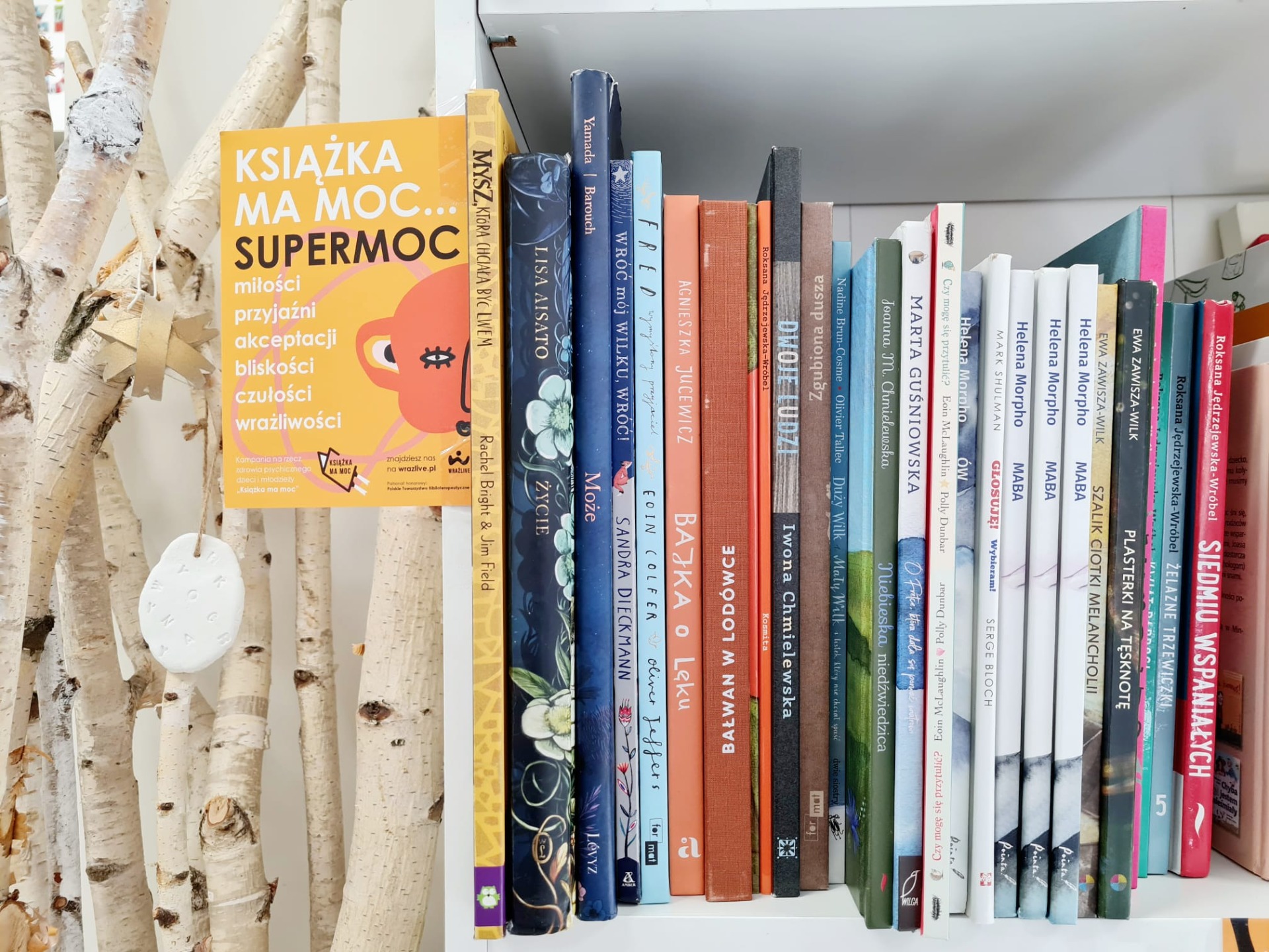 Razem wierzymy, że książka może być terapią, wsparciem i mostem w relacji dorosły–dziecko. Dlatego powstają Biblioteczki Mocy -półki pełne wrażliwych książek, które pomagają oswajać lęki oraz są plastrami na smutki i trudne sytuacje jakie pojawiają się w życiu.