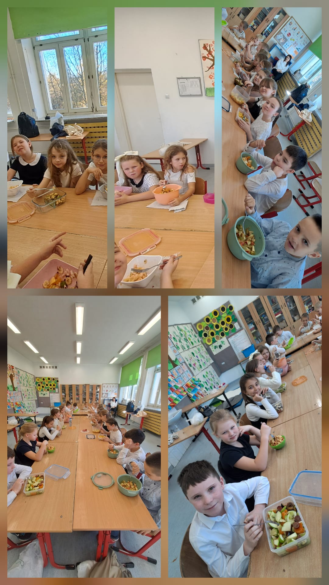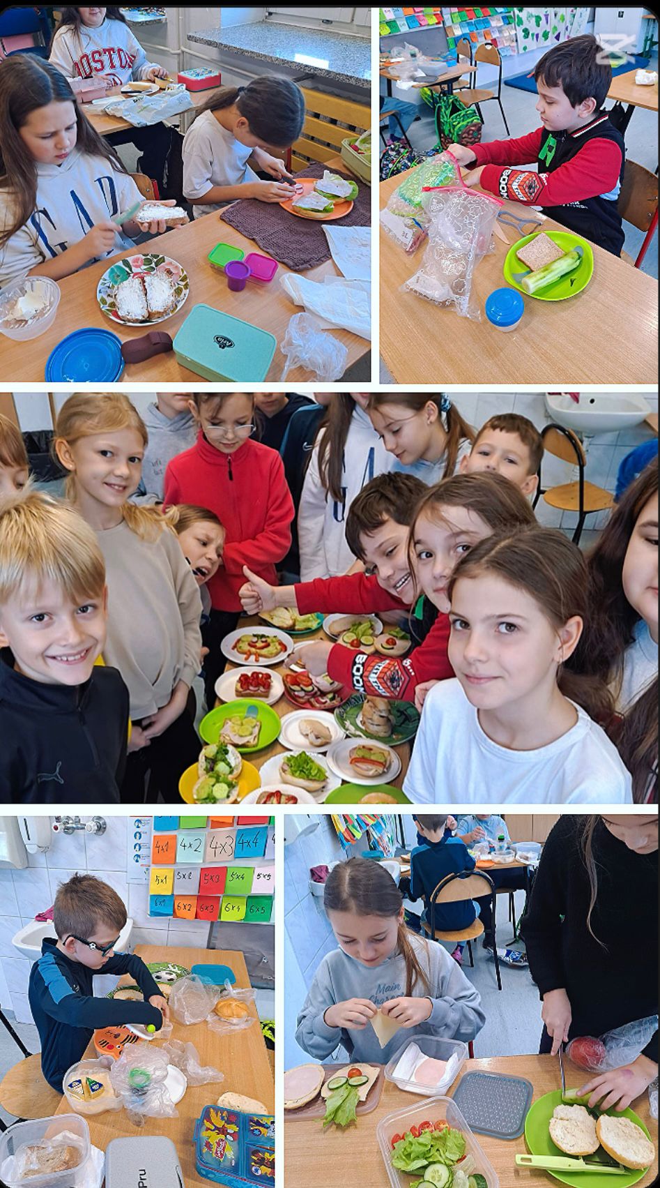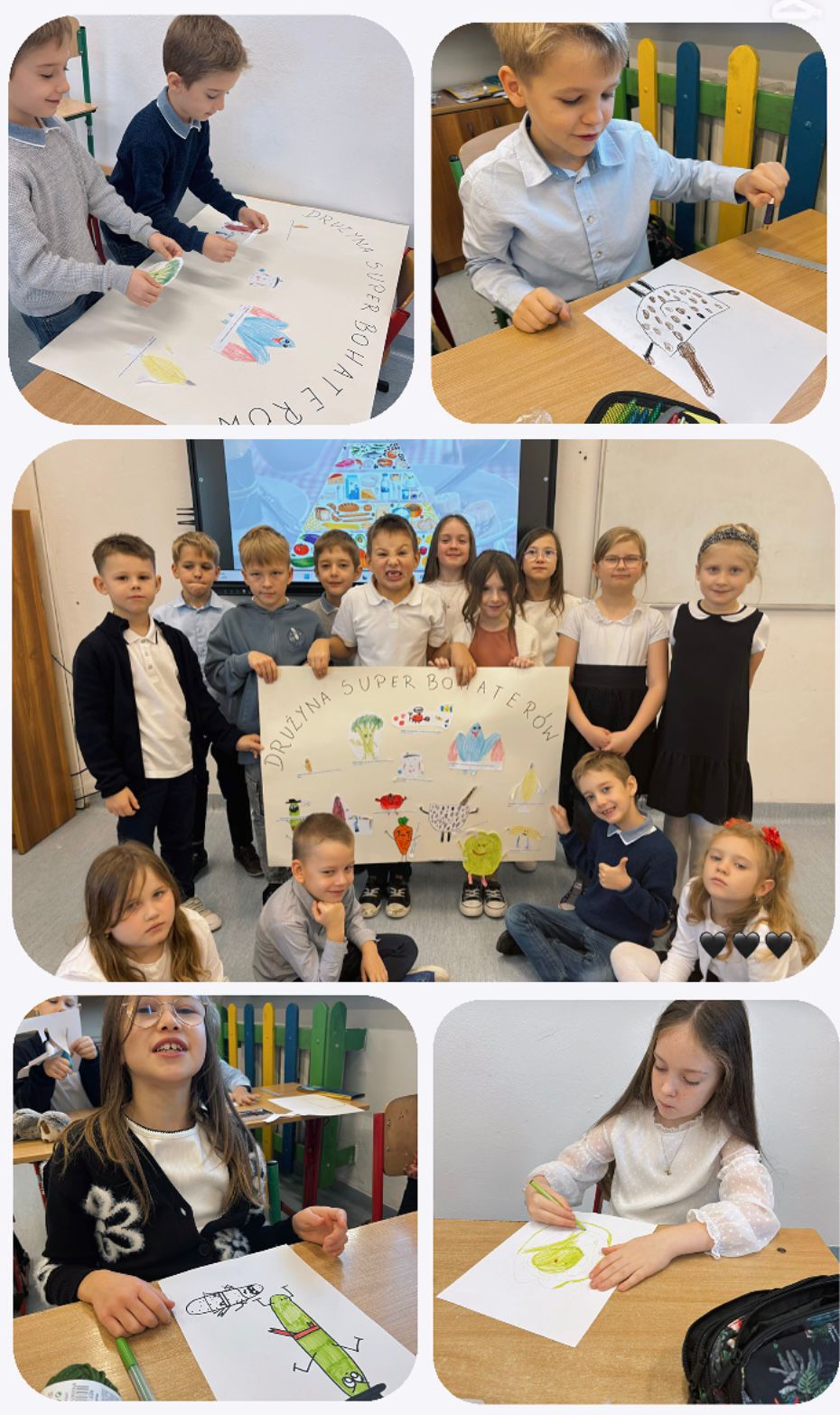Rozpowszechnianie zasad zdrowego odżywiania, informowanie o konsekwencjach złej diety i promowanie świadomości zdrowotnej wśród dzieci to główny cel, który przyświecał naszym działaniom w ostatnich dniach. Były pogadanki, zabawy, quizy, wspólne spożywanie samodzielnie przygotowanych przez uczniów kanapek, sałatek, szaszłyków. Robiliśmy kiszonki z ulubionych warzyw, powstała nawet Drużyna Superbohaterów z Kapitanem Brokułem na czele, Ogórkiem Ninja, Płatko- Manem i Super Jogurtkiem. Uczniowie tworzyli piękne kolaże owocowo- warzywne. Na pewno było kolorowo i zdrowo!