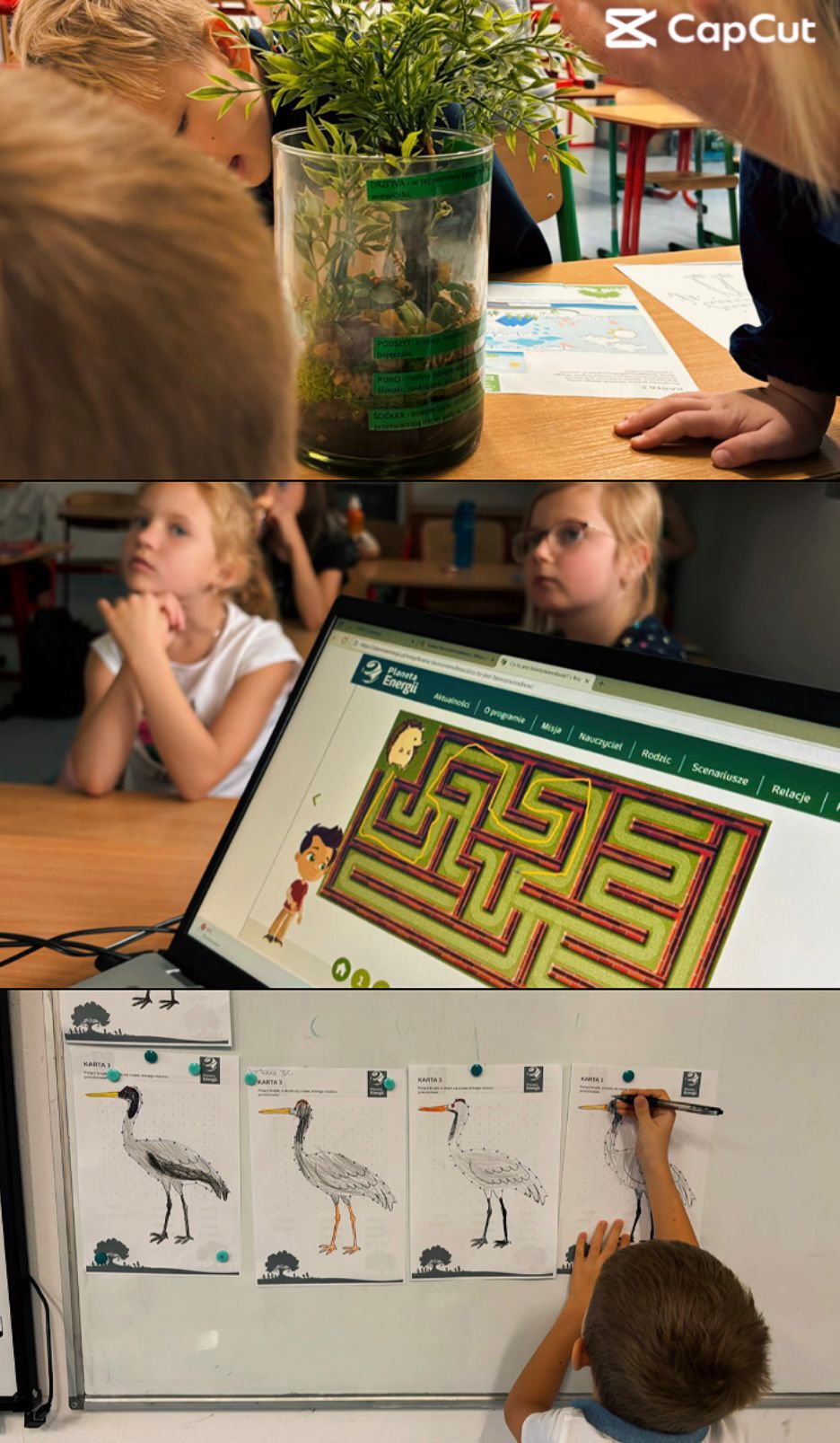 W tym roku z wyzwaniem Planety Energii zmierzyła się klasa 2c. Uczniowie poznali bagniste tereny, poszukiwali wody w przyrodzie, poznali taniec żurawi, stali się strażnikami wodnych łąk. Jednak mimo wszystko najwięcej czasu poświęciliśmy drzewom. Uczniowie zapoznali się z bogactwem bioróżnorodności obszarów leśnych, ze szczególnym uwzględnieniem okolicznej przyrody. Wiedzę zamknęli w zielnikach. Ich pracę wraz z innymi pracami koleżanek i kolegów z klas 2 zostały wystawione na szkolnym korytarzu. Każdy kto miał chęć mógł podziwiać różnorodność drzew, ich liści i owoców. Udowodniliśmy, że każdy z nas może być ekobohaterem na co dzień.