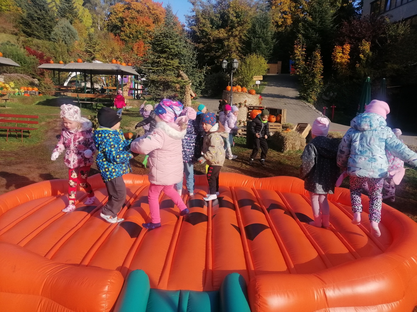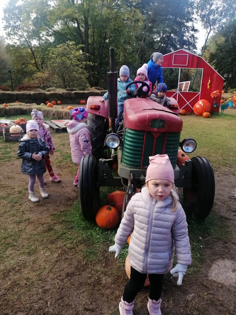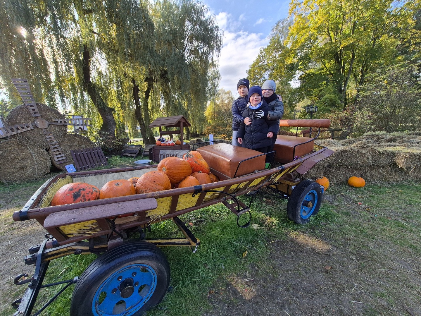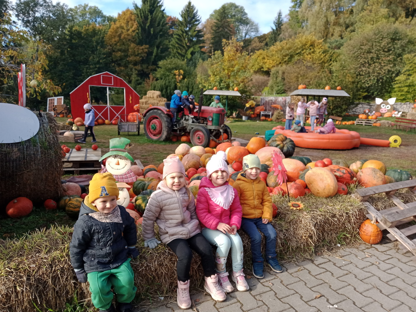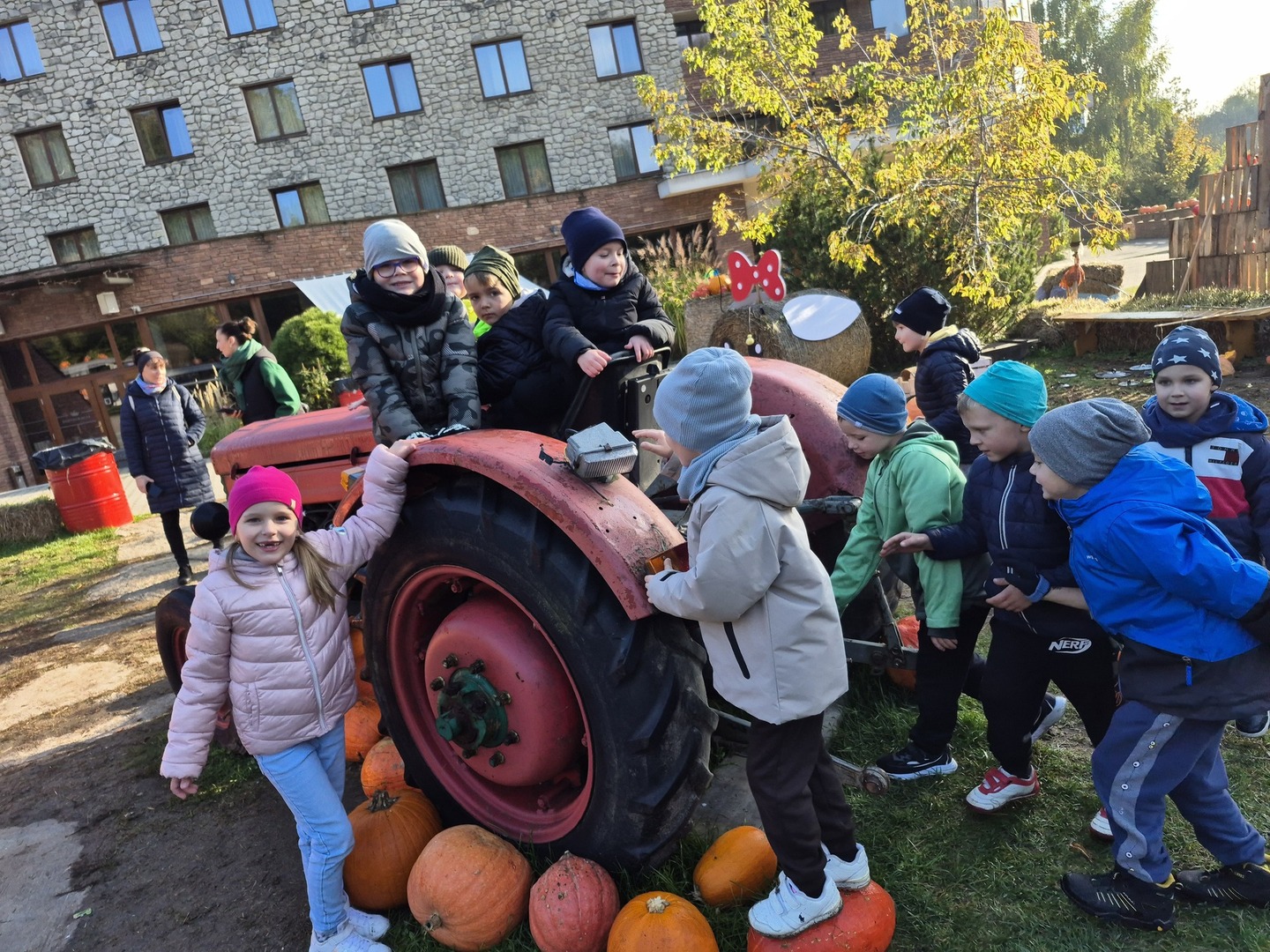 Na miejscu czekało wiele atrakcji. Dzieci mogły zobaczyć różne odmiany dyń. Dowiedziały się, jak rosnął dynie i do czego można je wykorzystać w kuchni oraz w jesiennych dekoracjach. Po zwiedzeniu przyszedł czas na współną zabawę na świerzym powietrzu. Dzieci kożystały z placu zabaw, bawiły się w labiryncie ze słomy i uczestniczyły w grach ruchowych. Wycieczka byla pełna wrażeń i pięknych jesiennych kolorów. Wszyscy wrócili do przedszkola zmęczenia, ale bardzo szczęśliwi.