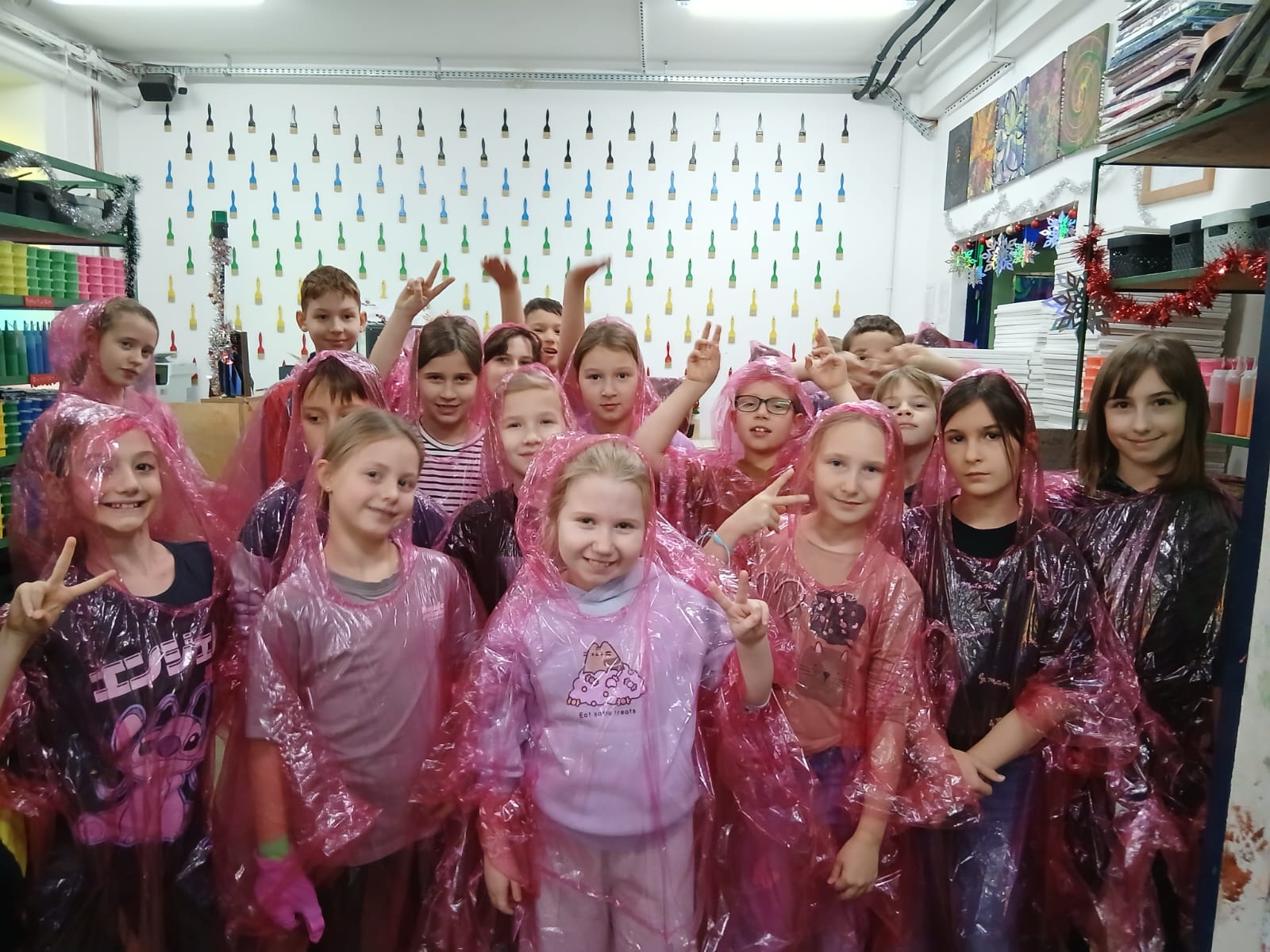 We wtorek, 2 grudnia, uczniowie klas 3c i 4a spędzili niezwykle twórcze przedpołudnie w kreatywnym studiu Pigcasso. Dzieci chlapały farbą, malowały obrazy i pozwalały wyobraźni działać bez granic. To była nie tylko świetna zabawa i sposób na wspólne odstresowanie, ale także wyjątkowy, pełen kolorów mikołajkowy prezent, który na długo pozostanie w pamięci uczestników.