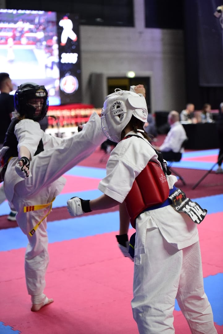Obie siostry po wygranych 3 walkach bez utraty żadnego punktu, walczyły w finale pokazowo, prezentując szeroki wachlarz umiejętności. Pierwsze punkty straciły dopiero na rzecz siostry. Aurelia zapunktowała jako pierwsza waza-ari, trafiając mae-geri jodan aby chwilę potem Anastazja odrobiła stratę techniką Ushiro-mawashi-kaiten-geri. Siostry ostatecznie rozstrzygnęły pojedynek w dogrywce na korzyść tym razem Anastazji.