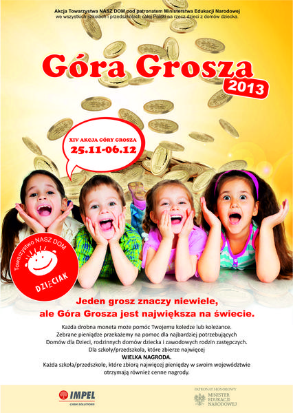 Tak jak w roku poprzednim, nasza Szkoła uczestniczyła w Ogólnopolskiej akcji „Góra Gorsza″. Na przełomie listopada i grudnia członkowie SU zbierali, często przeszkadzające nam, „groszowe sprawy″. Dzięki pomocy uczniów klasy IV w przeliczaniu góry, dowiedzieliśmy się, że łącznie z Przedszkolakami uzbieraliśmy 183 złote i .... . I tak oto Nasza Górka Grosza włączyła się w pomoc Dzieciakom, które nie mogą żyć z własną rodziną.