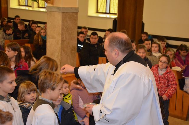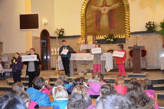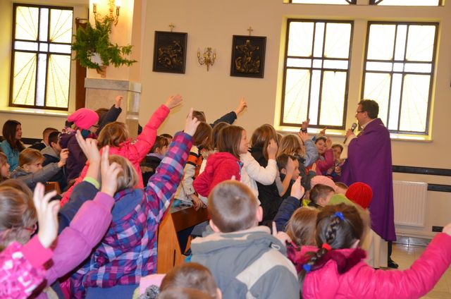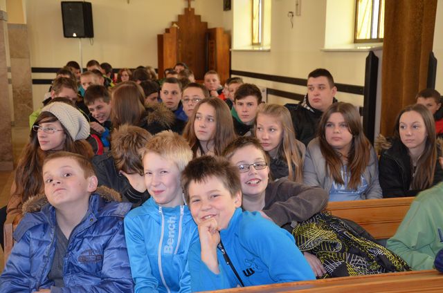 W dniach od 3 do 5 marca w naszej parafii odbyły się rekolekcje szkolne dla Szkoły Podstawowej i Gimnazjum. Pierwszego dnia uczniowie starszych klas Szkoły Podstawowej i wszyscy uczniowie Gimnazjum wzięli udział w spotkaniu z Arcadio pt. „Rób to co kochasz”. Spotkanie trwające prawie dwie godziny miało za zadanie przekonać uczniów, że warto mieć i realizować swoje pasje i zainteresowania, bo one bardzo pomagają nam w przezwyciężaniu zła. Młodsze dzieci ze Szkoły Podstawowej oglądały film animowany pt. „Ben Hur”.Drugi dzień to dzień spowiedzi. Uczniowie Gimnazjum przygotowani udziałem w Drodze Krzyżowej przygotowanej przez nich samych, a uczniowie Szkoły Podstawowej przez rachunek sumienia, skorzystali z sakramentu pojednania. Młodsze dzieci ze Szkoły Podstawowej oglądały film animowany o Janie Pawle i potem był konkurs o przyszłym Świętym (pierwsze trzy miejsca należały do uczniów klasy drugiej: Karoliny Kowalskiej, Cezarego Gmitrowicza i Natalii Gajowiak).Udział w liturgii Środy Popielcowej zakończył rekolekcje. Uczniowie przygotowani przez rekolekcje, przyjmując znak popiołu na swoje głowy, wyrazili gotowość wejścia w tajemnice Wielkiego Postu. Trzy słowa: modlitwa, post i pomoc drugiemu (jałmużna) to słowa – klucze, by dobrze przeżyć Wielki Post i przygotować się na spotkanie z Chrystusem Zmartwychwstałym.