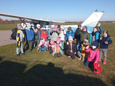 Chmurka Tosia i piloci z Klubu Seniorów Lotnictwa